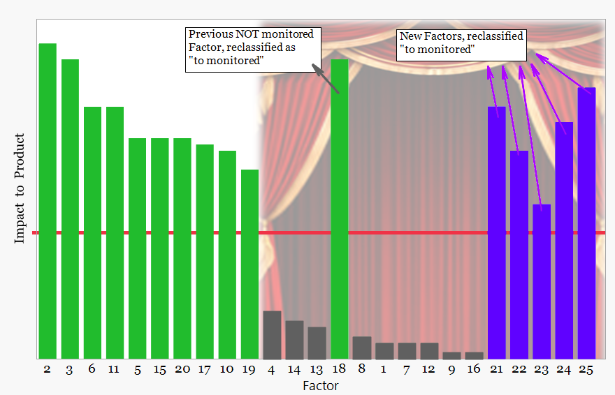 At this stage the curtain opens, revealing how the process behaves under real manufacturing conditions. Monitoring of the critical factors may reveal changes that indicate the influence of additional variables previously considered insignificant or not recognized during development. When such signals appear they are investigated through the quality management system and, where appropriate, the relevant factors may be reclassified and incorporated into the monitoring strategy.